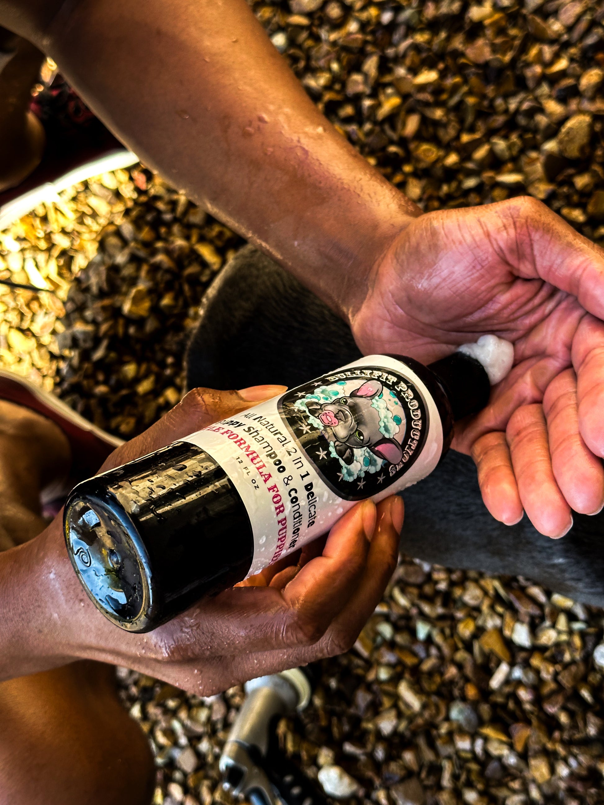 Discover the ultimate grooming experience with BullyFIT All Natural Delicate Puppy Shampoo & Conditioner 12oz—your go-to organic dog shampoo. Crafted with care, this gentle formula is designed for puppies with sensitive skin, making it the perfect addition to any pet grooming kit. Our sulfate-free, paraben-free blend features reverse osmosis water, lavender Castile soap, and soothing aloe vera to cleanse and hydrate without irritation.