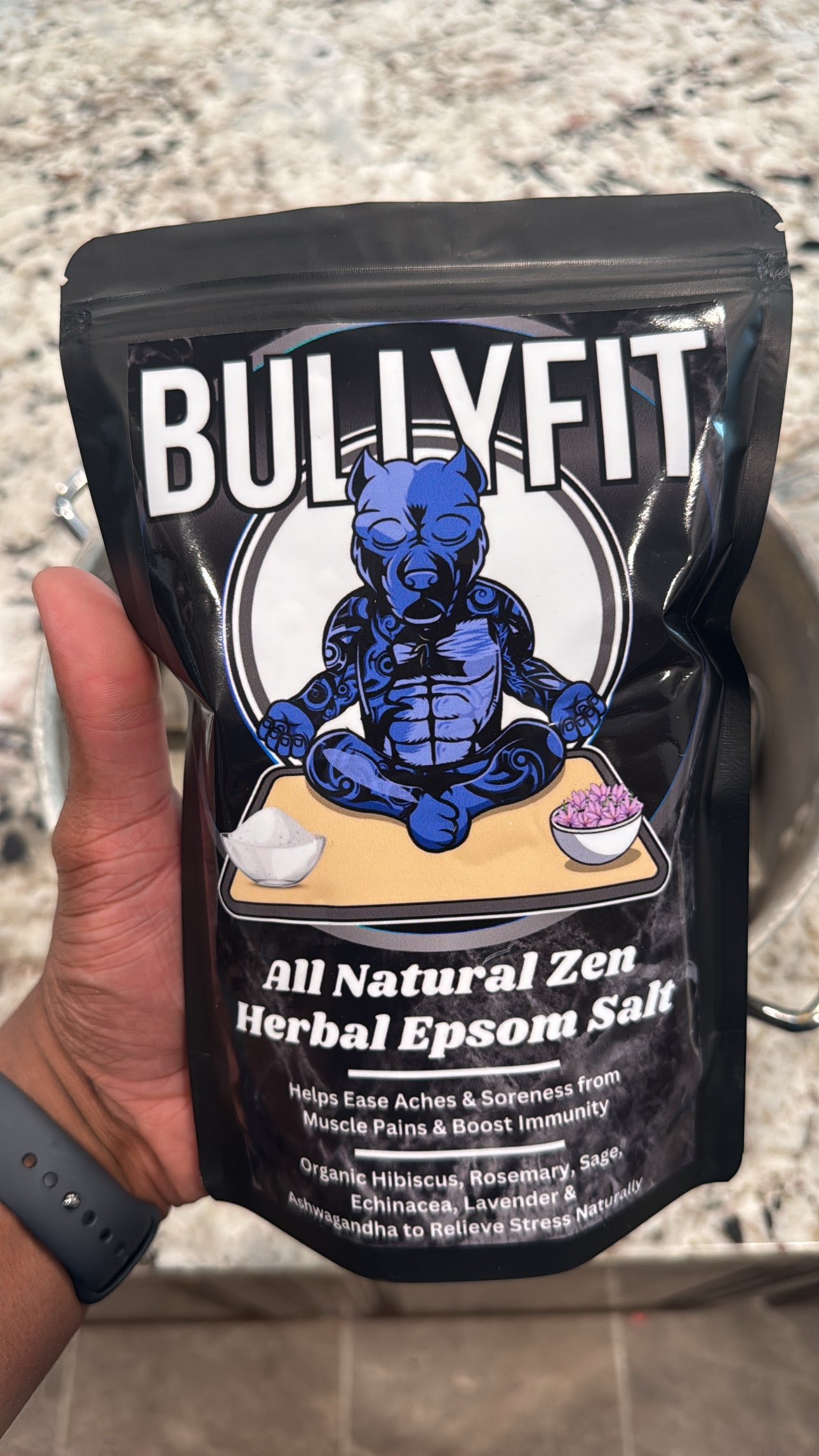 BullyFIT All Natural Zen Herbal Epsom Salt. (6 Satchel Bags Per Pouch) | Relaxing bath soak | Organic Bath Salts| Herbs| Plant Based| Recovery| Stress Relief| Ease Body Aches | Immunity Boost|Handcrafted