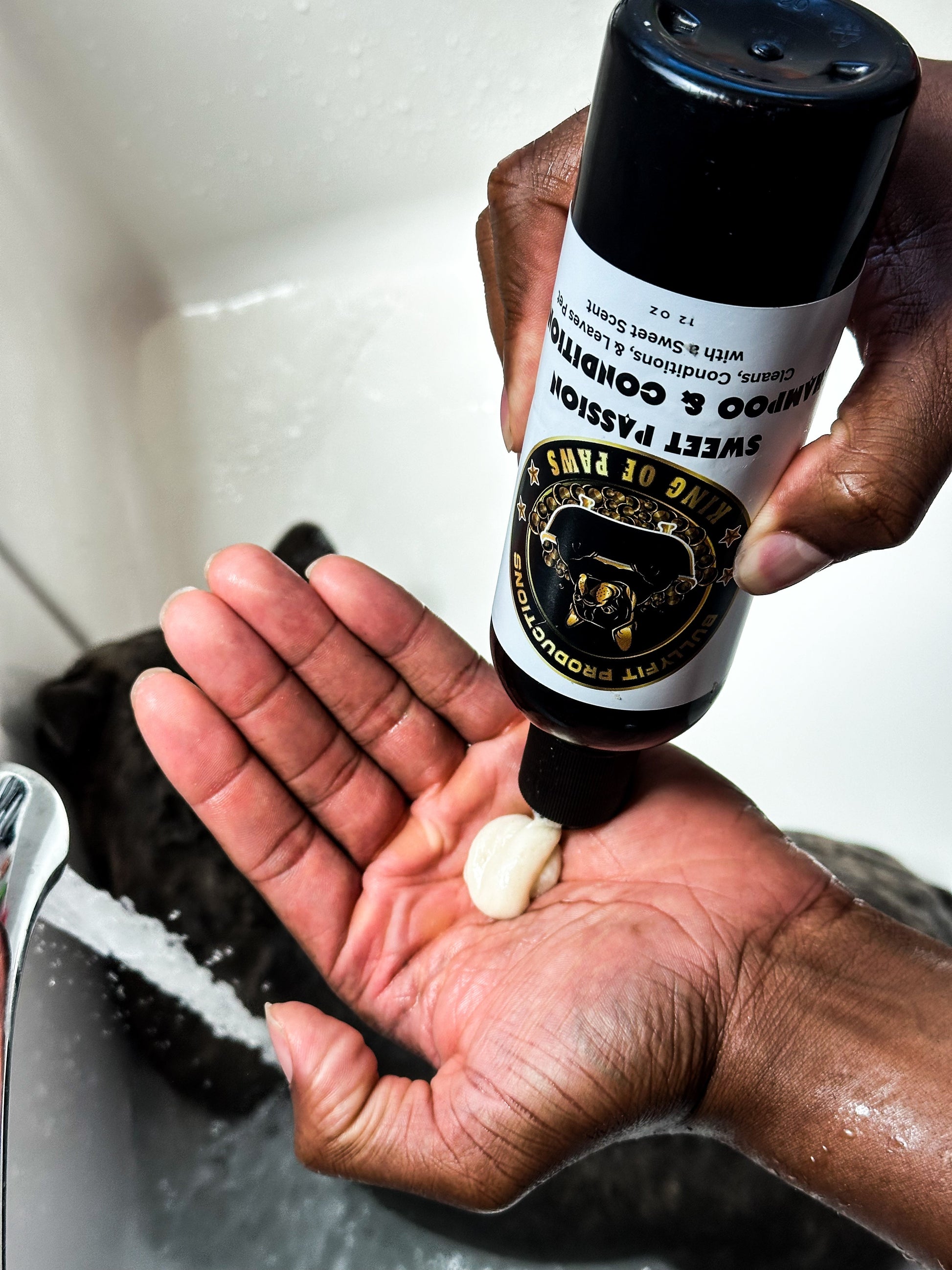 Elevate your pet grooming supplies with the BullyFIT x King Of Paws Sweet Passion Pet Shampoo & Conditioner 12oz and give your beloved dog the care they deserve!