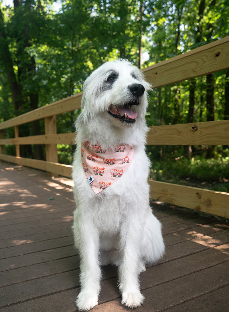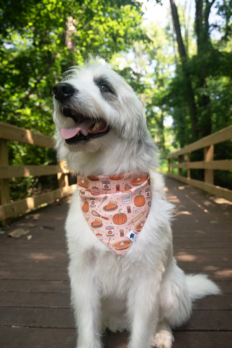The double sided Thanksgiving Dog Bandana is perfect for the upcoming holiday! It's soft subtle print looks great on any dog breed. This bandana is available as a tie on style bandana in sizes small, medium, & large. For questions about sizing please reference our sizing chart.