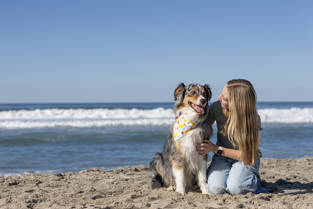This double sided adorable and fun colored bandana is perfect for Summertime! This bandana is made of our signature cotton fabric and is available in sizes small, medium, and large.